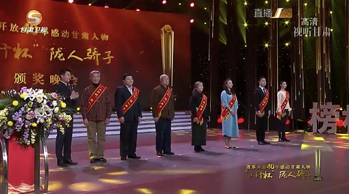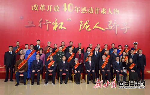 1月26日,由甘肃省委宣传部主办的改革开放40年感动甘肃人物——“工行杯”陇人骄子颁奖晚会在省广电总台演播大厅举行。本次“陇人骄子”共评选出文物有效保护的探索者樊锦诗、生态环境研究和保护的推动者秦大河、科技兴农的实践者王一航、草业科学的领军者任继周、热心公益的民营企业家雷菊芳、科技引领企业发展的先行者肖胜利、追求卓越的雕塑家何鄂、新闻出版事业的优秀代表胡亚权、脱贫攻坚的带头人马祎、基层司法维权的正义者侯殿禄、党员领导干部的楷模柴生芳、公共消防安全的人民卫士班玛南加、女性健康的呵护者朱天垣、禁毒战线的巾帼英雄史秀萍、南丁格尔精神的传承者王亚丽、装备制造业的大国工匠阙卫平、扎根戈壁的陇原名师闫桂珍、农民工的好榜样康仁和八步沙“六老汉”三代人防沙治沙集体、20世纪华人经典舞剧的创造者舞剧《丝路花雨》编创演团队共18位陇人骄子,2个陇人骄子集体。