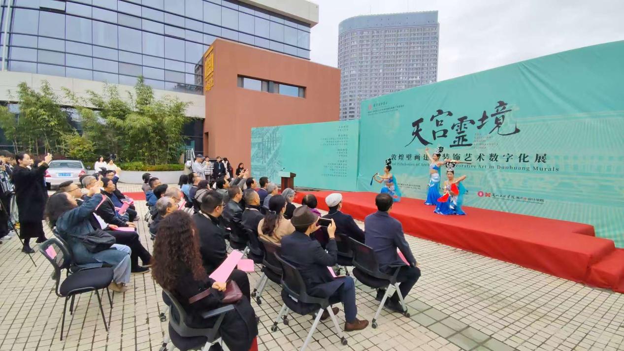 10月12日上午,由国家艺术基金资助、北京理工大学主办,我校美术与设计学院、北京理工大学设计与艺术学院、敦煌研究院美术研究所共同承办的“天宫灵境——敦煌壁画建筑装饰艺术数字化展(甘肃站)”在甘肃美术馆开幕。