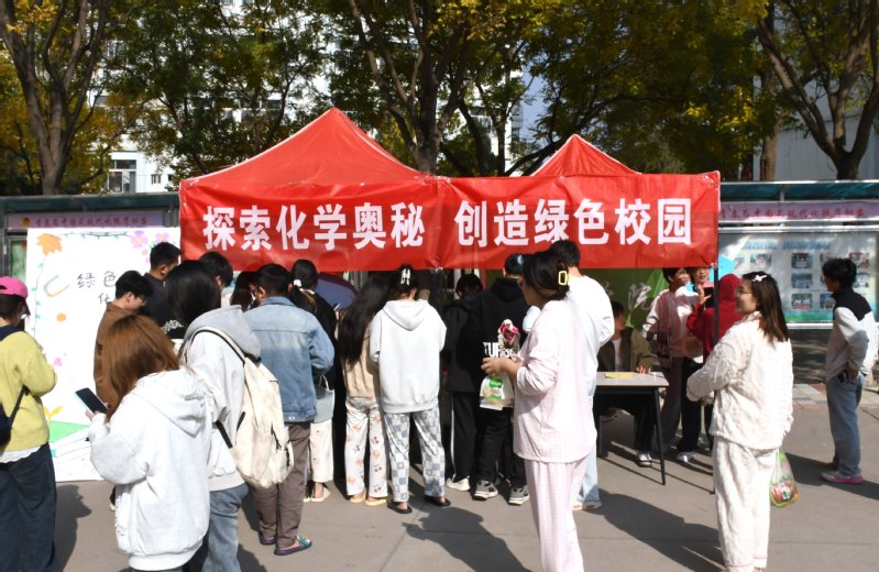 11月2日,化工学院学生会与绿色化学科技协会在思源楼广场联合举办“探索化学奥秘,创造绿色校园”主题科普活动,众多学生积极参与。