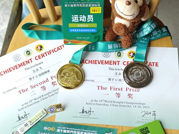 近日,第十届世界传统武术锦标赛在四川峨眉山落下帷幕。在为期七天的比赛中,我校社会体育学院2023级学生王永飞凭借出色表现,荣获棍术一等奖、拳术二等奖的优异成绩。