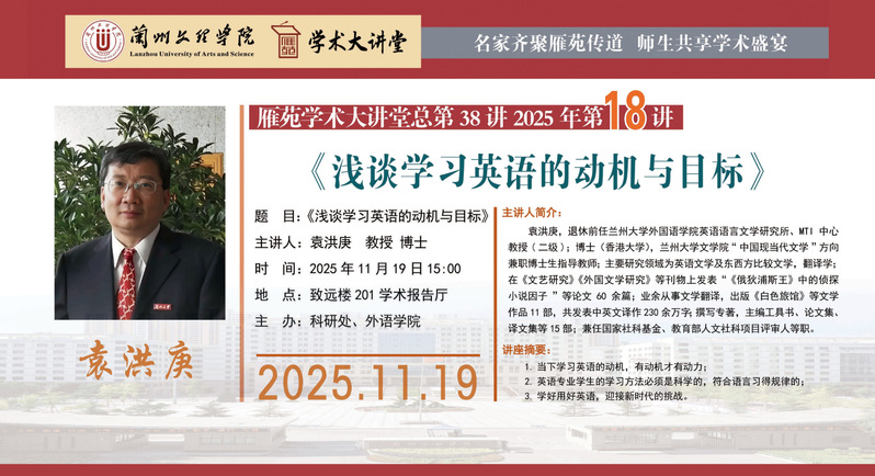 雁苑学术大讲堂预告:《浅谈学习英语的动机与目标》