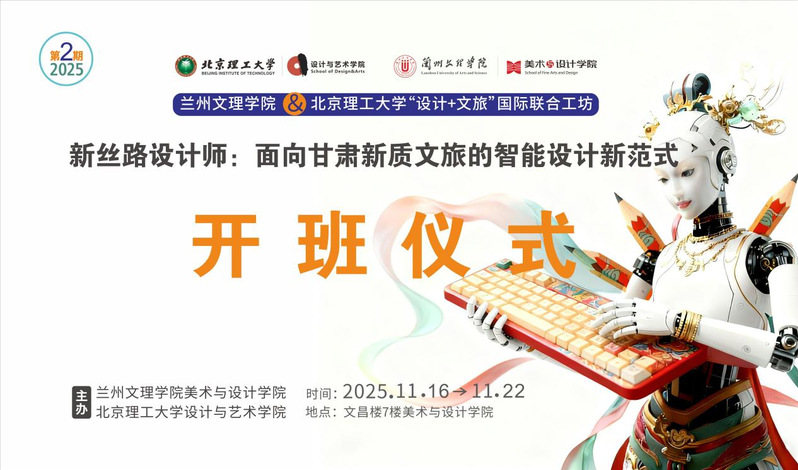11月17日,我校美术与设计学院与北京理工大学设计与艺术学院再度合作,共同启动以“甘肃新质文旅智能设计”为主题的“设计+文旅”国际联合工坊。这是继今年四月首期合作后,两校在文旅融合与科技赋能领域的进一步深化探索。