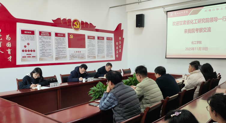 为深化校企协同,推动产学研深度融合,11月18日,甘肃省化工研究院有限责任公司副总经理刘荣一行来我校化工学院,围绕化工、材料领域科研创新与成果转化开展专题座谈。学院相关负责人及专业骨干教师代表参会。