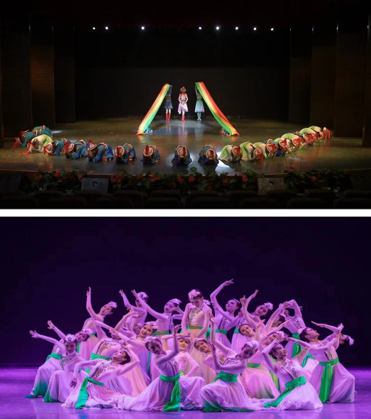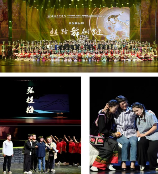 依托项目将成果转化为课程教学,文化筑基、思政引领打造特色品牌。学院坚持从课堂教学入手,把“培养人的工作”和“推进精品剧目创作”有机结合,采取项目化运作模式,通过教育部、文化部等项目,创排原创敦煌舞舞台剧《敦煌梦幻》《舞出莫高窟》《舞从敦煌来1》《舞从敦煌来2》《丝路舞翩跹》《飞天盛宴 丝路华章》六部,创排陇剧《张桂梅》《马踏飞燕》《梨园百花歌盛世》等,“雁之声民族管弦乐团”奏响了充满活力与特色的文理之声。既推动了艺术教育与思政教育融合,又是对中华优秀传统文化创造性转化、创新性发展。