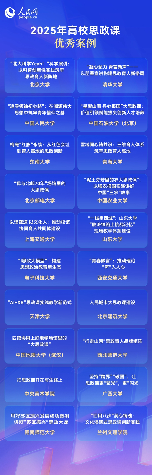 近日,人民网发布《2025年高校思政课改革创新情况分析报告》。报告根据各高校推进思政课改革的社会反响、信息传播量、主流媒体关注度、舆论反馈情况等维度,推介20个优秀思政课程案例。我校探索构建的“四用八步法”润心铸魂思政育人体系成功入选,为全国高校思政课改革创新提供了具有甘肃特色的范例借鉴。