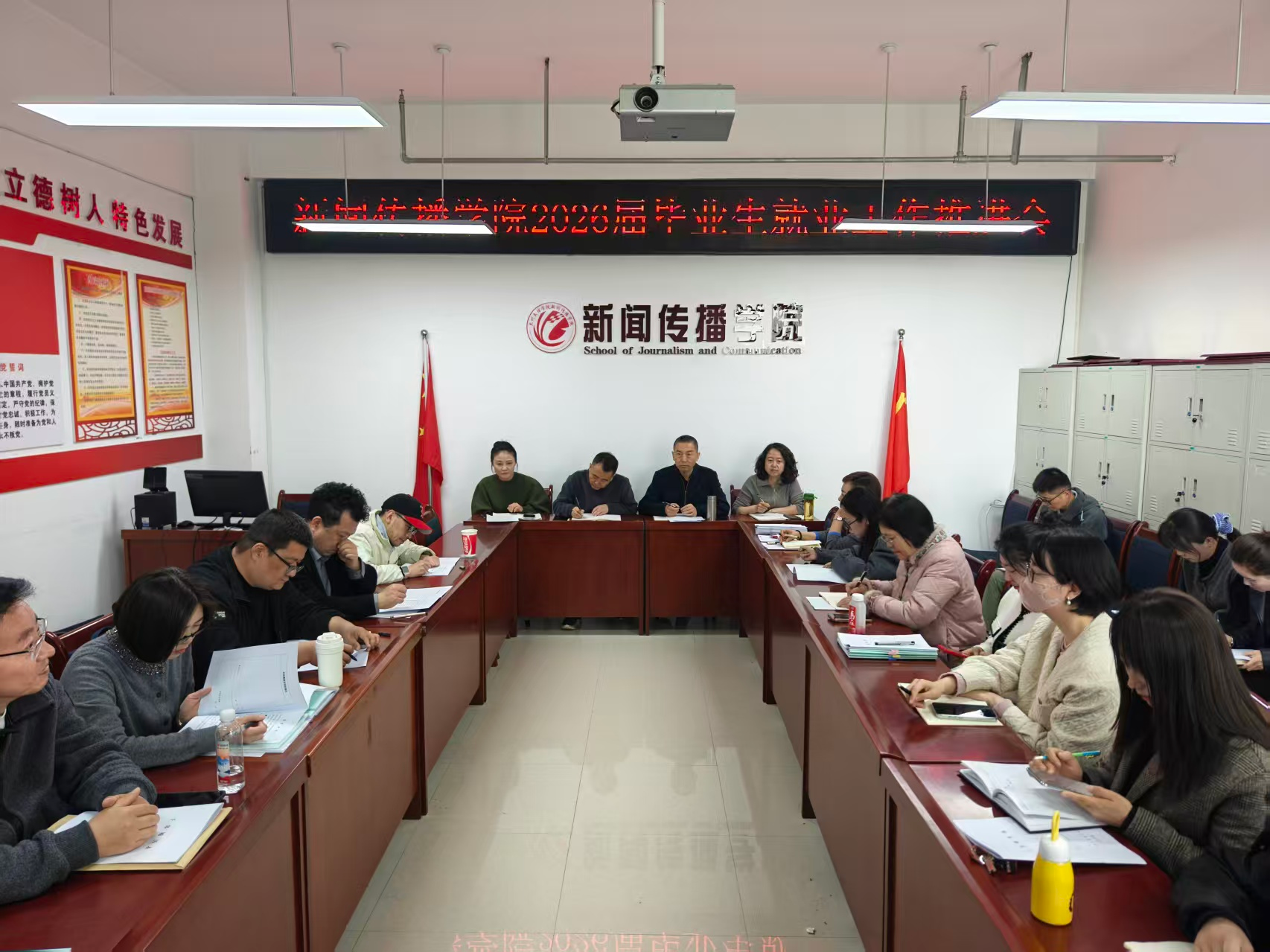 3月12日,新闻传播学院召开2026届毕业生就业工作推进会,全面部署下一阶段就业工作。学院领导班子、毕业班班主任、辅导员及就业工作人员参加了会议。