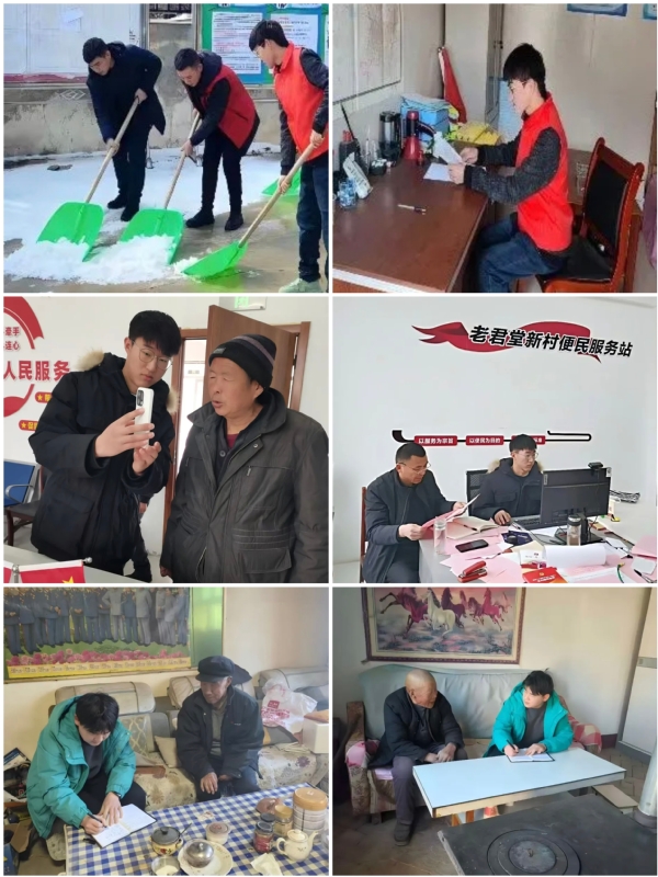 乡村振兴,青春同行。我校学子深入乡村一线、扎根基层沃土,主动融入乡村治理与服务,用脚步丈量民情,用实干服务群众,为乡村振兴注入青春动能,在基层实践中体会责任与价值。外语学院2023级学生包永江扎根定西乡村,协同红十字会开展惠民政策宣讲、扫雪便民服务,打通服务群众 “最后一公里”。新闻传播学院 2025 级学生王修祥投身乡镇政务,参与村台值班、便民服务、社保认证、民生数据核对等工作,用专业视角记录乡土故事。传媒工程学院 2024 级学生罗志逸走进泾川乡村,走访关爱留守老人,在调研与陪伴中读乡情传温情,以青春行动关爱乡村特殊群体。
