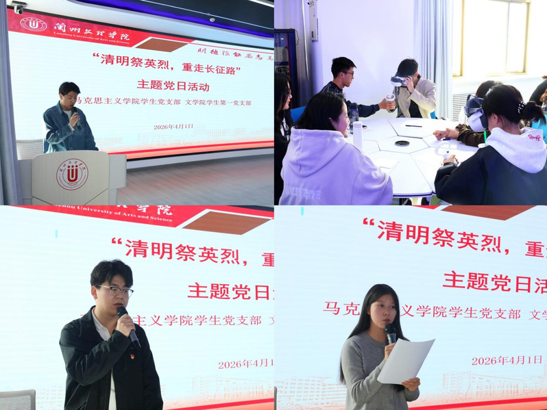 为弘扬长征精神,培养青年学生家国情怀,4月1日,文学院学生第一党支部与马克思主义学院学生党支部在马克思主义学院VR教室开展“清明祭英烈,重走长征路”主题党日活动,两个党支部党员、入党积极分子参加活动。