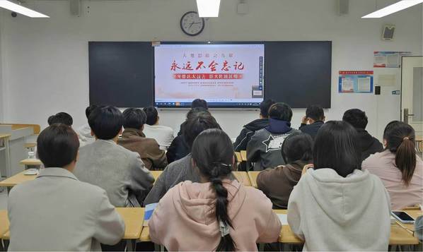 理论铸魂,班会观课悟初心。学院各班级召开主题班会,集体观看思政公开课《永远不会忘记》,沉浸式回顾长征历程、体悟 “不怕牺牲、百折不挠” 的长征精神。班主任结合专业引导,鼓励学生将红色精神融入学习科研,坚定奋斗信念。