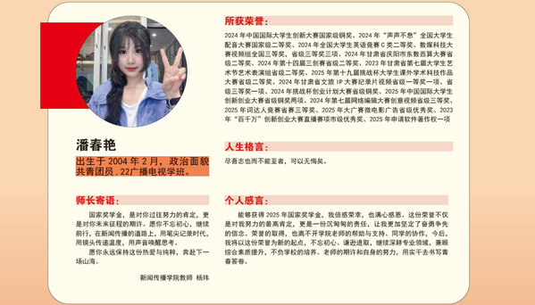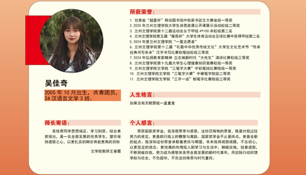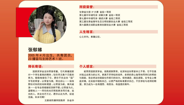 编者按:青春逢盛世,奋斗正当时。2024-2025学年,我校36名同学获“国家奖学金”。国家奖学金是我国高校学生奖励体系的最高荣誉之一,获奖者均为学子中的佼佼者,是践行德智体美劳全面发展的生动典范。他们以扎实学识筑牢根基,以责任担当凝聚同伴力量;秉持明德之心,怀揣强能之志,以励志之力,行笃行之举;锤炼本领、传递温暖,以标杆之姿诠释新时代青年的责任与担当。