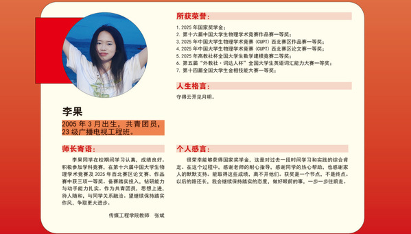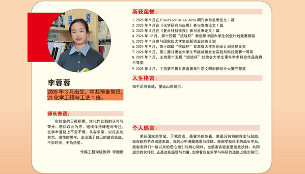 【青春榜样】兰州文理学院2024-2025学年国家奖学金获得者风采展(第三期)