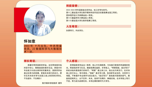 编者按:青春逢盛世,奋斗正当时。2024-2025学年,我校36名同学获“国家奖学金”。国家奖学金是我国高校学生奖励体系的最高荣誉之一,获奖者均为学子中的佼佼者,是践行德智体美劳全面发展的生动典范。他们以扎实学识筑牢根基,以责任担当凝聚同伴力量;秉持明德之心,怀揣强能之志,以励志之力,行笃行之举;锤炼本领、传递温暖,以标杆之姿诠释新时代青年的责任与担当。