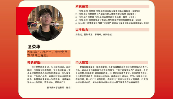 榜样如灯,精神如炬。希望全体学子以榜样为镜、见贤思齐,汲取奋进力量;以“明德强能,励志笃行”校训精神为指引,让奋斗成为青春底色,将个人理想融入国家发展大局,书写青春华章,共谱学校高质量发展新辉煌!