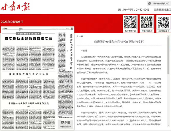 当前,甘肃省非遗保护已迈入系统性保护、高质量发展的关键阶段。学校将持续发挥学科专业、科研平台、人才队伍的核心优势,深化与省市县文旅部门、非遗保护机构及传承群体的深度协作,进一步完善非遗研究体系、提升人才培养质量、拓展社会服务维度。在黄河文化、长城文化、丝路文化的整体框架下,学校将深度挖掘甘肃非遗的时代价值与当代活力,让古老陇原文脉在新时代薪火相传、生生不息,为甘肃建设文化强省、守护中华民族精神家园贡献更大力量。