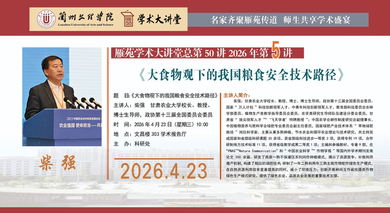 雁苑学术大讲堂预告:大食物观下的我国粮食安全技术路径