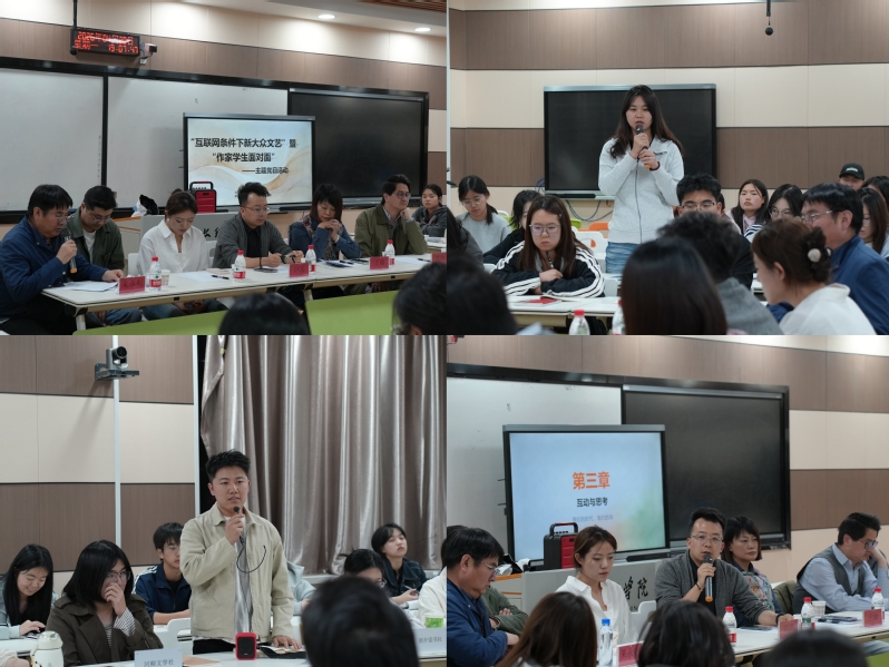 为深入学习贯彻全国“两会”精神,推动党建与专业实践深度融合,提升学生政治理论素养和文艺创作能力,4月20日晚,文学院学生第一、第二党支部联合举办“互联网条件下新大众文艺暨作家学生面对面”主题党日活动。学生党支部书记、党员和入党积极分子参加活动。