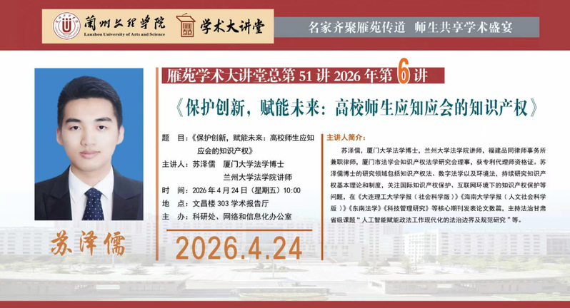 雁苑学术大讲堂预告:《保护创新,赋能未来:高校师生应知应会的知识产权》