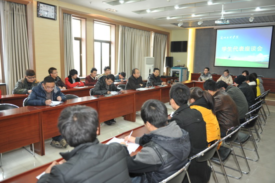 李宗刚处长向学生代表介绍了本次座谈的目的,希望同学们畅所欲言,发挥学校主人翁的作用,真实反映学生们的想法和建议。为改进工作作风,构建和谐校园,建设合格本科学校做贡献。