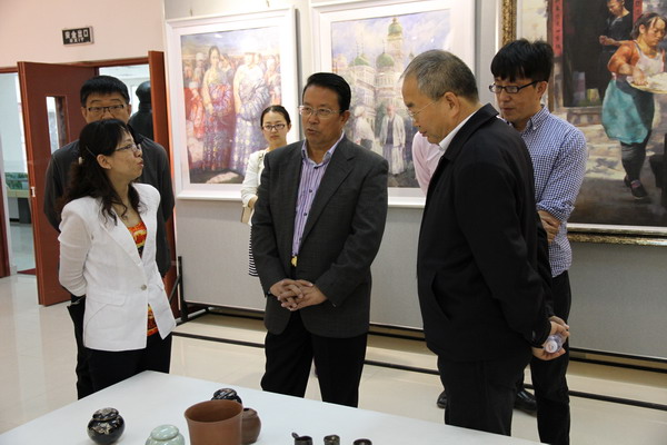 2015年5月14日上午,甘肃省人民政府原副省长李膺同志在校党委书记史百战、校长汪建华、副校长郑伟强及校纪委书记杨阳等陪同下参观了展览,他兴致勃勃地听取讲解,对一些感兴趣的作品不时地和美术学院教师互动交流,气氛热烈。他对美术学院的工作和老师们的创作作品给予充分的肯定,衷心希望处于芳华岁月的美术学院,在国家文艺方针的指引和学校转型发展的机遇中,“凝心聚力,开拓创新”,秉承“尚德、特立、笃行、至美”的精神,为地方经济发展、文化繁荣和学校转型发展作出积极贡献。