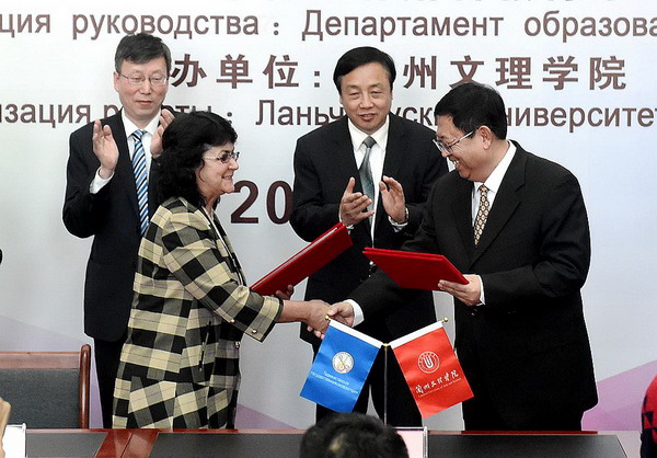王嘉毅厅长在签字仪式的讲话中表示,丝绸之路不仅是一条商贸之路,更是一条双向的文化互通互融之路。甘肃处于丝绸之路黄金段,境内的文化遗址、出土文献为了解丝绸之路及中外文化交流提供了极为丰富的重要资料。近年来,我省高等教育发展取得突出成就,相信在“一带一路”倡议的引领下,与丝绸之路沿线国家的教育交流与合作将成为促进我省高等教育发展的新亮点。