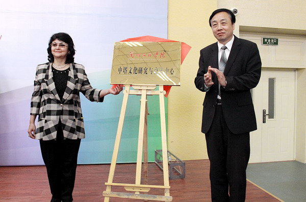 随后,郝远副省长与塔吉克斯坦国立音乐学院校长法罗嘉特教授共同为兰州文理学院中塔文化研究与交流中心揭牌。研究中心将以中国本土文化与塔吉克斯坦民族文化为研究基础,以服务两国文化事业发展为目标,以促进中塔文化融合与发展为导向,力求在研究与交流中取得丰硕的成果。