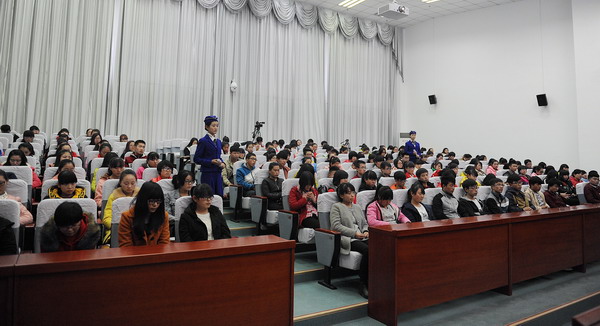 龚大锬同志讲述了自己和妻子李成环一起做公益、献爱心的心路历程。他们并不富裕,却舍得将积蓄全部拿出来,放弃去南方度蜜月的计划,和其他3名爱心人士驱车千里,为玉树灾区的孩子们、孤儿们送去棉鞋、电脑和书籍。他们生活清贫,但他们以善为乐,用真心去关爱每一位需要帮助的人。报告中,龚大锬同志几度哽咽,在场学生感动于他们自发的、真实的、质朴的志愿行动与感人事迹,泪水模糊了双眼。报告会后,同学们纷纷发言并向龚大锬同志提问,表达对他们的敬佩之情。