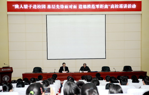 12月1日下午,“陇人骄子进校园基层先锋面对面 道德模范零距离”高校巡讲活动第四场报告会在我校学术报告厅举行。2012年“十大陇人骄子”、“兰州市优秀青年”、“兰州市杰出青年志愿者”――龚大锬来我校作了题为《(最美夫妻)爱的路上我永不会停歇》的报告。我校师生代表共300余人聆听了报告会。会前,党委副书记普登学会见了龚大锬同志并进行了亲切交谈。报告会由党委宣传(统战)部部长赵学森主持。