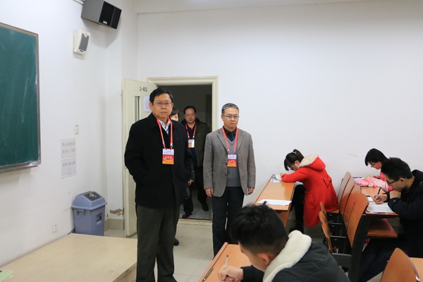 2015年下半年全国大学英语四六级、高等学校英语应用能力AB级考试于12月19日、20日举行。校长汪建华、副校长张焱、省考试院巡视员在教务处、纪委监察室、学生处、外语学院等单位负责人陪同下,对考试考场进行了巡视。