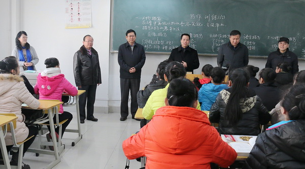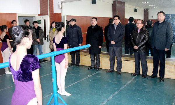 陪同汪建华校长慰问的还有校办主任薛志忠、工会主席路鹏及团委、艺术中专部相关负责人。