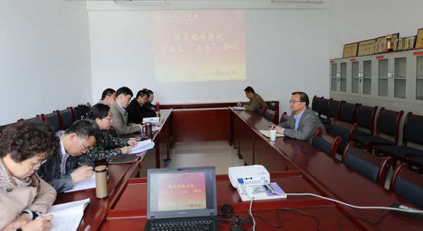 根据校党委的工作安排,2016年4月21日上午,数字媒体学院在院会议室召开2015年度党总支“三述”会,学校分管校领导郑伟强副校长出席会议。会议由数字媒体学院院党总支书记陈小琴主持,院党总支成员、教研室主任与会。