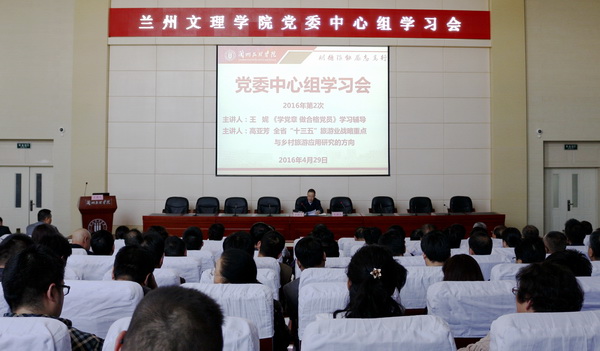 4月29日下午,我校在学术报告厅召开2016年第二次党委中心组学习。马克思主义学院副院长王妮副教授和我校乡村旅游发展研究中心常务副主任高亚芳教授分别作了题为《学党章做合格党员》和《全省“十三五”旅游业战略重点与乡村旅游应用研究的方向》的报告。校党委书记史百战等校领导、校院两级中心组成员、正高职称人员、副处级以上干部参加学习会议。会议由校党委副书记普登学主持。