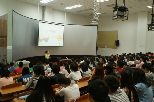 为进一步贯彻落实学生处2016年工作要点,全面推进我校的“青年修身计划”,学生处邀请旅游学院张晓玉老师于5月5日下午14;30在综合楼401教室举行了以“大学生文明礼仪”为主题的知识讲座。全校各班团支部书记和生活委员共200余人参加。
