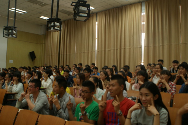 张老师从“洗手间的晚餐”故事谈起,强调人与人之间要彼此尊重,内心充满爱;又从中国传统文化的“礼”入手先后讨论讲解了:一、大学生的形象应该是怎样?二、大学生的仪容仪表应当注重哪些原则?三、现场互动示范了大学生人际交往中微笑的方法、站姿、坐姿、走姿、鞠躬礼以及握手礼等问题。张老师和蔼可亲的讲解和交流方式,使在座同学积极参与“礼仪”互动,使讲座达到了预期的效果。