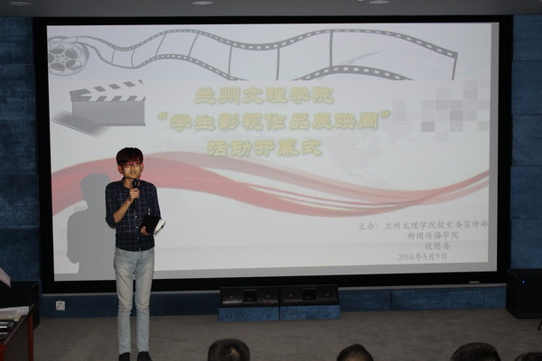 为纪念学校更名三周年,5月9日下午,由党委宣传部、新闻传播学院、校团委主办,新闻传播学院分团委承办的为期一周的兰州文理学院“学生影视作品展映周”在南校区综合楼9楼观摩赏析室拉开帷幕。校党委副书记普登学,宣传部部长赵学森,新闻传播学院党总支书记师克谦,校团委吴学宇老师以及新闻学院师生代表、各学院学生代表参加活动开幕式。