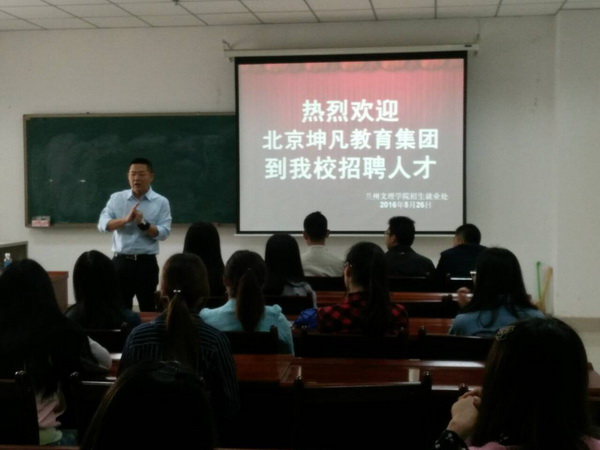 为扎实有效开展毕业生服务工作,努力帮助毕业生成功就业,提升我校毕业生就业率和就业质量,5月26日,招生就业处邀请北京坤凡教育集团(兰州分校)和武威阳光教育集团来学校开展校园专场招聘,提供了包括外语、语文、数学、化学和物理等科目的教师岗位90个。