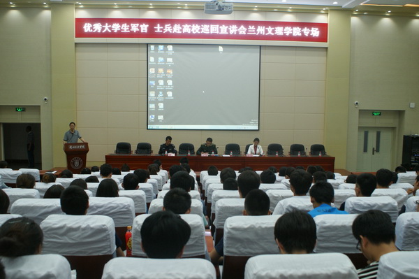 2016年5月31日下午,甘肃省军区优秀大学生军官、士兵代表巡讲团在学术报告厅进行宣讲。宣讲团由甘肃省军区司令部动员处参谋张炳炎带队,我校师生代表200多人参加了会议。会议由学生工作处王金平副处长主持。