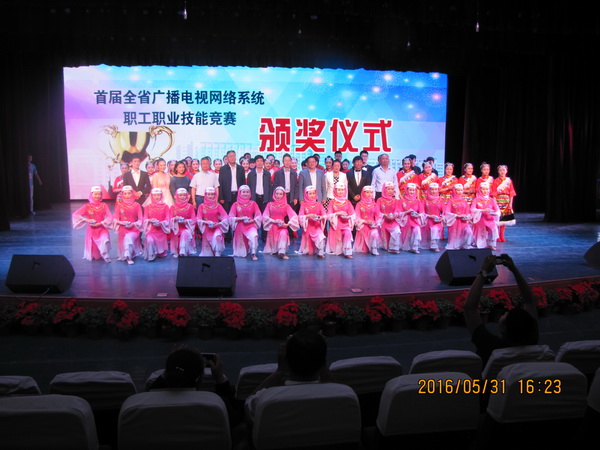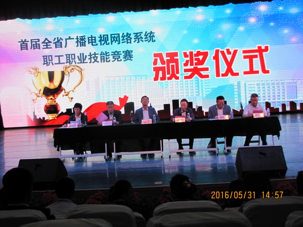2016年5月31日下午,首届全省广播电视系统职工职业岗位技能竞赛颁奖仪式在我校实验剧场隆重举行,出席颁奖仪式的领导有省广播电视网络系统党委书记高云,兰州文理学院党委副书记普登学、纪委书记李先锋、副校长王克太,省广播电视网络系统副总经理、工会主席朱林安,副总工程师赵鸿志,参加颁奖仪式的有广播电视网络系统参赛选手,电子信息工程学院全体师生共四百余人。颁奖仪式由省广播电视网络系统副总工程师赵鸿志主持。