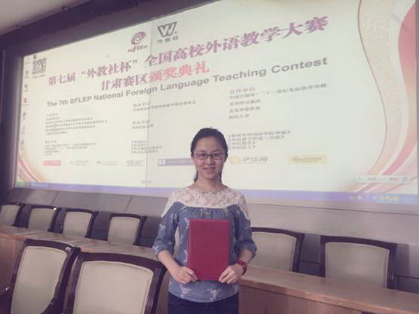 6月5日第七届“外教社”杯全国高校外语教学大赛甘肃赛区的决赛在西北民族大学落下帷幕。我校英语老师郭宁、沈明�参加了本次比赛。经过4日复赛、5日决赛的紧张角逐,郭宁老师获得综合组二等奖,沈明�老师获得视听说组三等奖。
