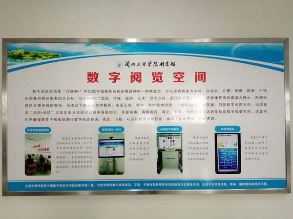 数字阅览空间是“互联网+”时代图书馆服务功能拓展延伸的一种新业态。它以读者服务为宗旨, 以自由、方便、快捷、简单、个性化移动图书馆建设为目标, 以互联网+“文化、旅游、艺术、传媒”四大方向进行数字图书资源、视频课程资源建设为核心,向师生提供方便快捷的查询、阅读及海量数字资源服务,让读者在“视听+阅读”立体化多元化阅读的乐趣,获取知识,丰盈精神。具有适应数字时代,满足读者需求,引导并创新阅读方式等多种功能。