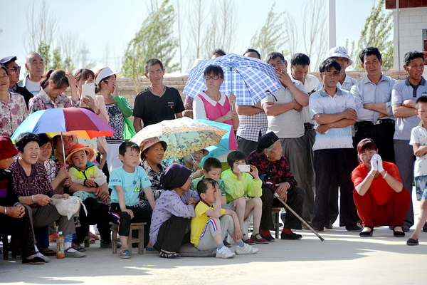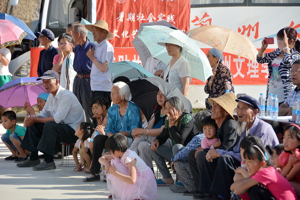 演出期间,村民们欢欣鼓舞,热情高涨。有的顶着炎炎烈日,老早来到了演出现场守候;有的不停地为演员加油鼓劲;有的积极报名,踊跃上台,为大家表演自编自导的节目,现场气氛非常热烈。