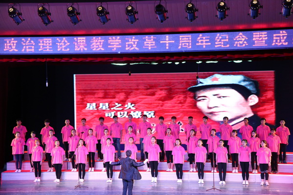 7月的兰州,骄阳似火,挥汗如雨。一群对马克思主义真信、真教、真干的思想政治理论课教师们,带领着对马克思主义真学、真懂、真用的文理学子们,冒高温顶酷暑,把对中国共产党的忠诚与热爱、对长征精神的继承、对中国梦的向往、对伟人毛泽东的新时代情怀演绎在一首首优美动听、情真意切的歌声里,凝聚在一篇篇荡气回肠、激情洋溢的诗词里。一部《在改革与创新中前行》的纪录片真实记载了马克思主义学院十年的改革之路,平凡而艰辛,坚定而执着,这是思想理论课教师忠诚党的教育事业,献给党的95周年生日的最好礼物。学生们把在思想政治理论课上学到的知识与自身专业结合,理论联系实际,把自己的所思、所想、所悟,用歌曲、舞蹈、诗歌、画笔、PPT等形式精彩展示,特别是文学院学生的情景剧《秋瑾》更是感人肺腑、催人泪下。这既是文理学子铮铮爱国之情、拳拳报国之心,青春献祖国、永远跟党走高尚情怀的生动体现,也是对思想政治理论课学习交出的一份最好答卷。