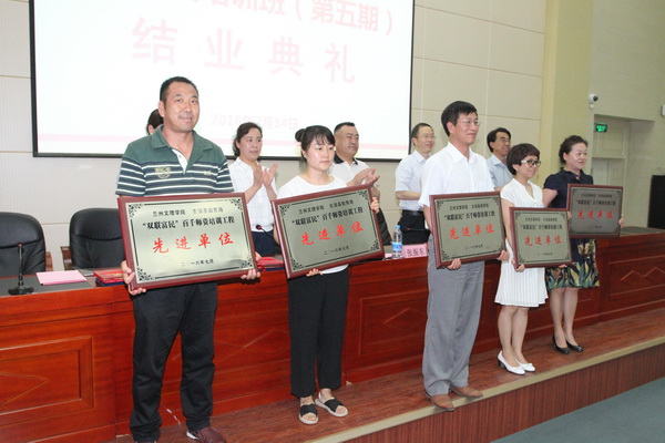 在结业典礼上,党委宣传部副部长贺志军同志宣读了表彰优秀学员及“双联富民”百千师资工程“先进单位”的决定,出席领导分别向“先进单位”、“优秀学员”以及“百千”师资工程第五期培训班学员,颁发了奖牌、荣誉证书和结业证书。