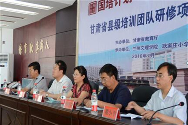 7月21日上午,“国培计划(2016)”甘肃省县级教师培训团队研修项目培训班开班典礼在兰州市城关区耿家庄小学多功能厅举行。项目首席专家、兰州文理学院副校长张兆勤,培训项目专家团队成员和培训学员200余人参加了开班典礼。开班典礼由兰州文理学院师范学院党总支书记张明荣同志主持。