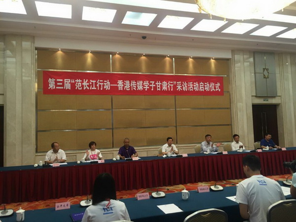 7月27日下午,第三届“范长江行动―香港传媒学子甘肃行”采访活动启动仪式在兰州宁卧庄宾馆举行,甘肃省副省长夏红民出席仪式。我校党委书记史百战和省委网信办、省外办、香港大公文汇传媒集团、甘肃公航旅集团等单位负责人出席启动仪式,省委网信办有关处室、大公报甘肃记者站、兰州大学新闻学院、兰州交通大学宣传部、兰州文理学院新闻传播学院、校办等部门负责人参加仪式。来自香港公开大学、香港浸会大学、香港树仁大学、香港树人大学、香港岭南大学、香港恒生管理学院、香港珠海大学、�理罗士女子学院等8所高校16名学生参加以及兰州大学、兰州交通大学、兰州文理学院3所甘肃高校的4名学生参加仪式。仪式由省委网信办副主任王国强主持。