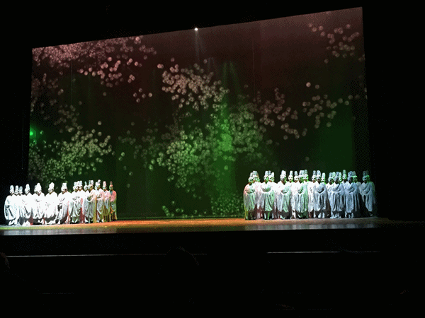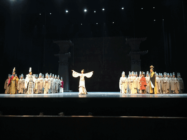 为了庆祝首届丝绸之路(敦煌)国际文化博览会隆重举办,充分发挥舞台艺术的宣传优势,践行甘肃省委、省政府文化走出去战略,国家艺术基金资助“丝路行•陇上韵”国内巡演,甘肃省歌剧院创排的大型原创歌剧《貂蝉》于2016年8月12、13日,在国家大剧院演出两场。受甘肃省歌剧院邀请,兰州文理学院音乐舞蹈学院合唱队成功在国家大剧院参演了大型原创歌剧《貂蝉》。这是国家大剧院“泱泱国风•舞动经典”各省优秀原创歌舞剧展演中唯一的一支歌剧项目,是大剧院经过对全国众多优秀作品选拔后确定演出的剧作,也是甘肃继《丝路花雨》、《大梦敦煌》后又一部在国家大剧院演出的精品力作。