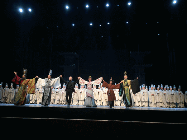 整场演出合唱环节从头至尾持续出场,而合唱队唱故事的形式,也造就了歌剧《貂蝉》成为一部有着浓郁西方歌剧表现风格样式的中国民族歌剧。全剧历时两个多小时,观众气氛热烈、掌声迭起、经久不息,赢得了在场两千多观众的好评。学校张焱副校长、人事处、科技处、文学院等部门的领导观看了演出。演出结束后张焱副校长亲切看望了学生,并与歌剧院彭德明院长、王跃春书记、我国著名青年指挥家肖超进行了交流,向大家对我校的大力支持表示感谢,对学生们的表现给予了充分的表扬与赞赏。