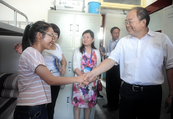 校领导首先来到新生接待点、报到缴费大厅等迎新工作现场,对报到注册、绿色通道、学生缴费、后勤保障、交通服务、安全保卫等方面的工作进行了检查,并详细询问了各学院新生报到情况。随后,校领导一行来到9号学生公寓、12号学生公寓亲切看望了部分新生及新生家长。