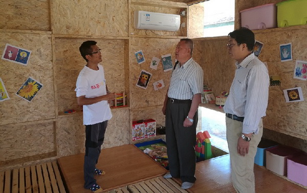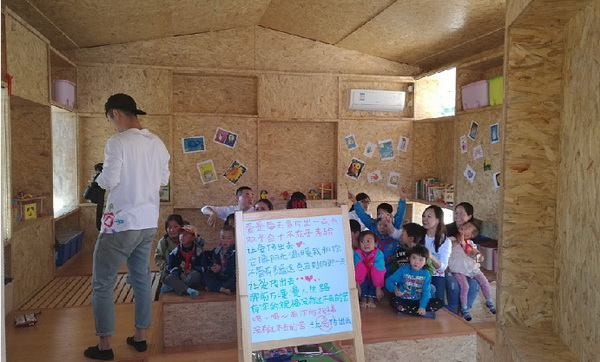 “童趣园”项目是由北京市西部阳光农村发展基金会发起的公益项目,通过我校张兆勤副校长向该基金会积极争取,2016年5月该基金会最终同意在我校双联点秦安县中山乡县弯村实施该项目。“童趣园”使用当地乡村常见的双坡屋顶形态,全木质框架搭建,透明玻璃自然采光,内部采用富于创意的格子造型,配以图书、玩具、智力开发游戏等工具,创造了适合儿童的游戏空间以及服务于成人交流、监护的日常功能。