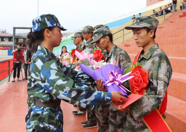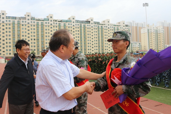 汪建华校长为同学们颁发了入伍奖金,表达了学校对他们的深切关怀,叮咛同学们继续发扬吃苦耐劳的精神,做一名优秀军人,历练好自己,保卫好家园。