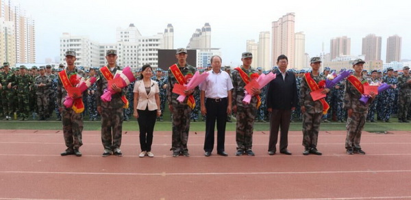 9月5日,学校在2016级学生军训现场欢送首批参军赴藏大学生。校党委书记史百战,校长汪建华,副校长张兆勤出席欢送仪式。相关学院院领导,学生处处长李宗刚、副处长王金平及3000多名2016级参训新生共同欢送入伍同学进藏服役。